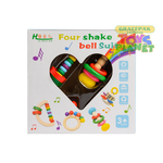 Four Shake Bell Suit Musical Instrument Box for 1-3 year olds includes 4 wooden rattles / dice of different designs – giving your child the maximum opportunity to practice grasping ability, stimulate touch sense for young children. Music is an indispensable art form in human life. Music gives children many benefits such as: Soothes the child’s soul. Helps develop intelligence. Increased ability to cooperate and express emotions.