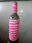 A beautiful flower vase made from by-products (Used liquor bottle and sewing threads). Different shapes and designs are available at reasonably cheap prices.
