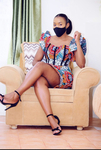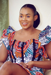 Cotton Ankara pencil fitted dress with fringe details on the bodies. Slightly Flared bottom with layered dropped sleeves, with in built bra caps.