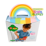Toddlers build skills as they enjoy hands-on fun with this push-along police car and fire-fighting helicopter. Basic construction tasks improve fine motor skills and teach toddlers about shapes and colors. Exciting rescue stories inspire role play and strengthen kids' social and emotional skills. Detailed decoration on both sides of the vehicles, a siren brick (no noise) and a propeller that can be spun all help to bring the imaginative play to life. Building cards, featuring life-size images of the models, let kids position the bricks over the image as they build.