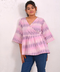 Expressions Pink lolly is handcrafted in double ikat weave in pure cotton with love and care. This effortless, comfortable and breathable top is perfect to carry anywhere and everywhere, Style it with denims, shorts or sarees for your casual to formal days.