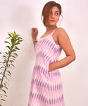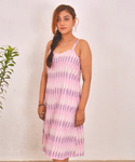 This gorgeous soft pink dress can't be missed. Our "Rosy" dress is handcrafted with love and care in Ikat. Ikat needs no introduction. The wonderful pattern and color combination is inspired by pink rose. It's effortless comfort with functional pockets makes it a wardrobe staple.