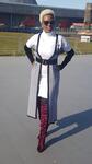 The white dress is a roll neck sleeveless dress with a roll neck.