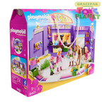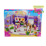 Test out the big range of riding accessories on offer at the Playmobil 9402 City Life Horse Track Shop with Wooden Horse. Browse through many horse grooming accessories and equestrian outfits. The shop features a wooden horse to try items out and a large mirror. Complete with 3 Playmobil figures and lots of accessories.
