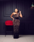 High quality sequin-velvet dress with a maxi-bodycon fit.
