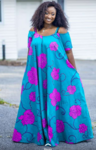 • Off-Shoulder Short sleeve maxi dress in a bold African fabric
