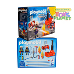 - Set includes two figures, extinguishing pump, two repositionable flames, and other accessories