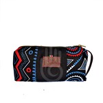 The pouch is made from jeans and Ankara/kikoi fabrics, with a waterproof lining.