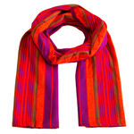 - Tutan print scarf featuring red, orange, green and purple stripes