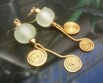 Recycled glass and brass pendant earrings.