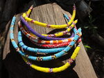 These elegant African Maasai inspired beaded necklesses of high quality are of various colors including; red, yellow, blue, green, and gold. Medium and small sizes included.