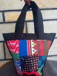 Small-sized handmade bag with multicolored Ankara patches. Can be used for light travel, work, and casual purposes.