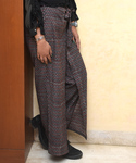 This relaxed soft cotton wrap pant is hand printed in natural dyes by our artisans, Comes with a front tie up and elasticated waist to give you comfort. It is a must have piece to create capsule wardrobe and a wonderful companion for travelling.
