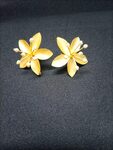 Beautiful sassy studs with floral motifs. These are set in brass with 18k gold plating. Finish is bright gold. Perfect for your picnics and all casual occasions.