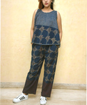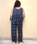 Indigo cotton pajama set handprinted in our signature print ensures style with utmost comfort and its organic dyes makes sure that you have pure organic thing on your skin. top has a handkerchief cut ensures easy breezy fit and pant comes in comfort fit with two pockets and elasticated waist.