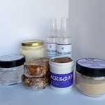 Our maxi set contains a jar of raw sheabutter ,a jar of african blacksoap, Aloe vera gel , bentonite clay and Rosewater spritz.