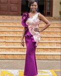 This elegant Neoprene gown is custom made for your measurements and specific alterations.