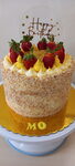 Decadent layers of coconut cake, filled in with pineapple sauce and creamy buttercream, topped with fresh strawberries and toasted coconut flakes.