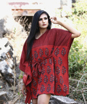 Red Handwoven Cotton Linen Short Handprinted Caftan